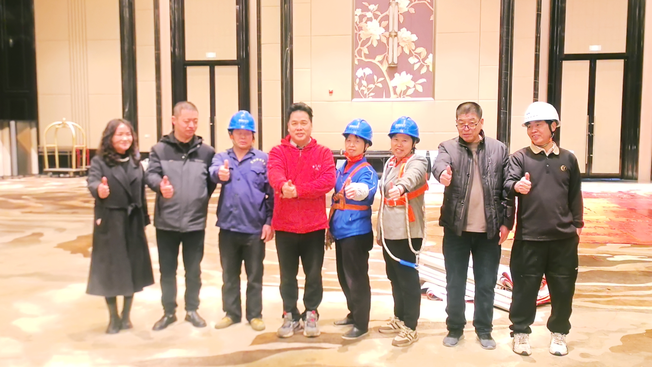 面对长沙瑞吉酒店极其严苛的标准,我们不敢有丝毫怠慢。为了保护每一寸珍贵的地毯,我们铺设了全面的防护和专用木板。